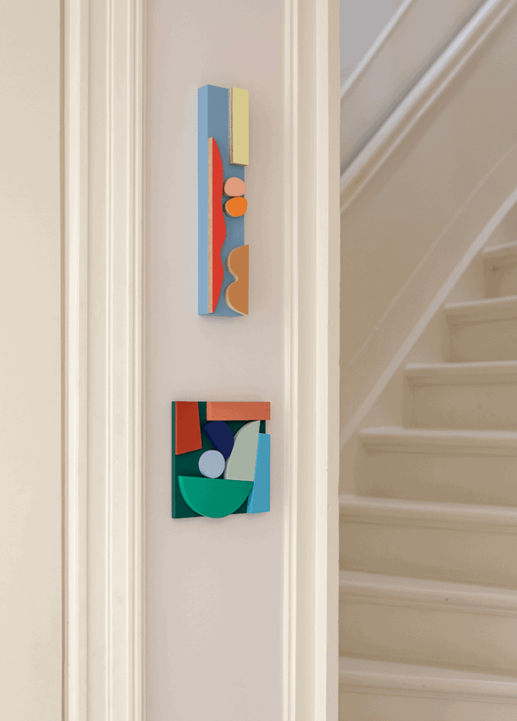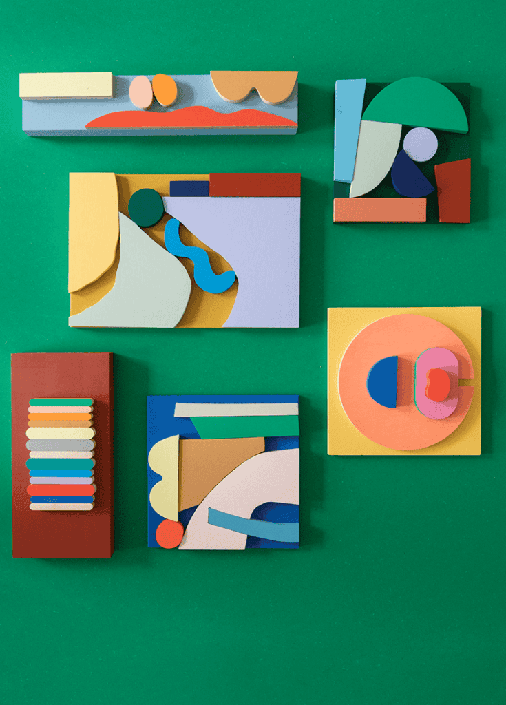 ‘Just recently we created some small unique art works together with artists Jantien Baas and Monika Nowak who are part of our design team. These are mere assemblies of shapes, assembled and painted from left-over wood in our studio. These pieces are delicious bits of eye candy with a striking expressiveness in all their simplicity. They will be launched on our Atelier Toit website in May 2023.‘