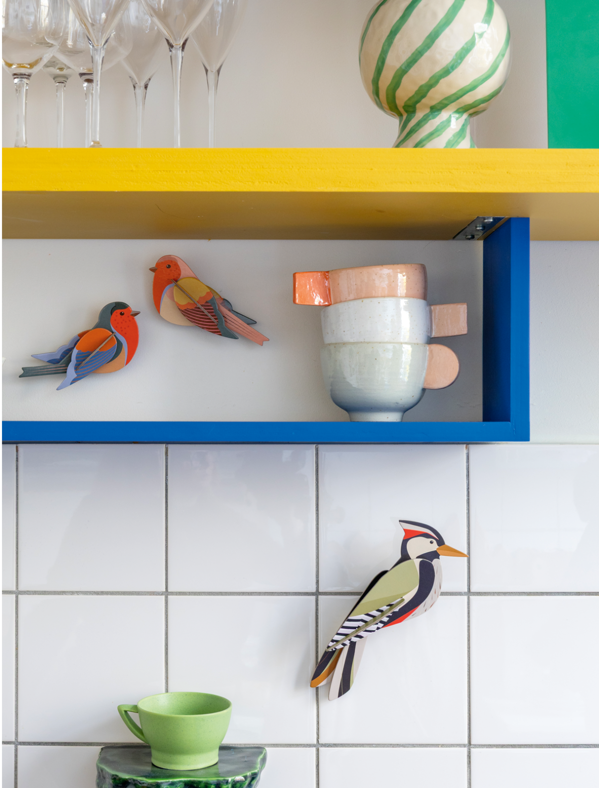 Gartenvögel zwitschern um uns herum, picken ein paar Krümel, schauen sich kurz um und flattern dann wieder davon. Sie bringen Farbe in unseren Alltag. Diese Rotkehlchen fliegen nicht weg und können einen schönen Platz an deiner Wand haben.