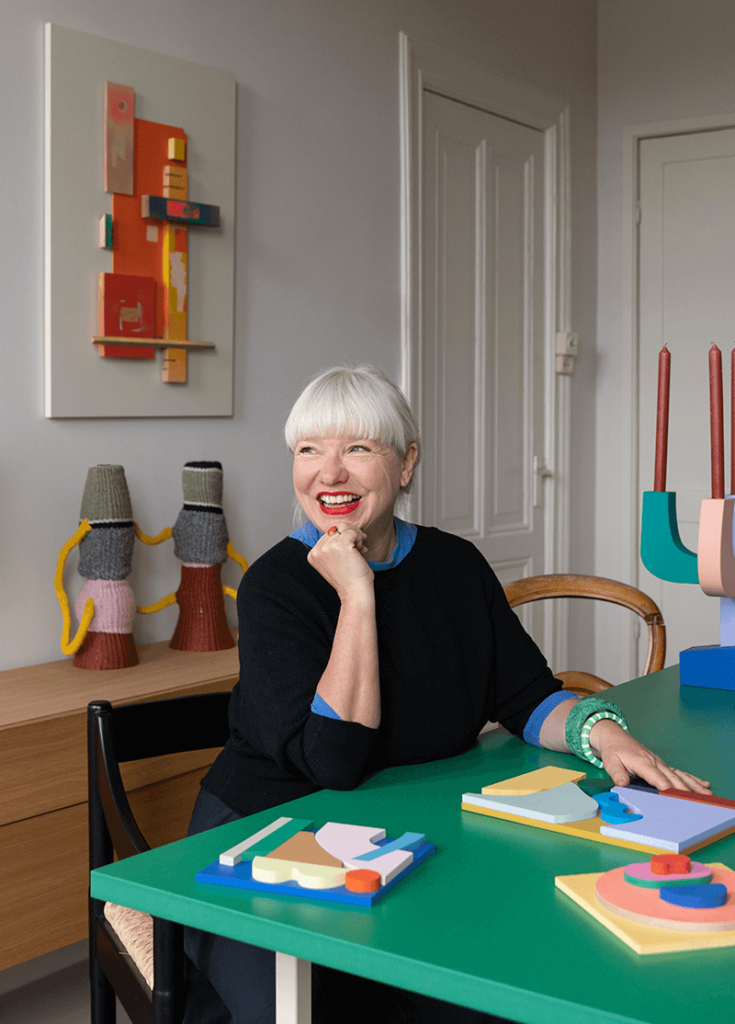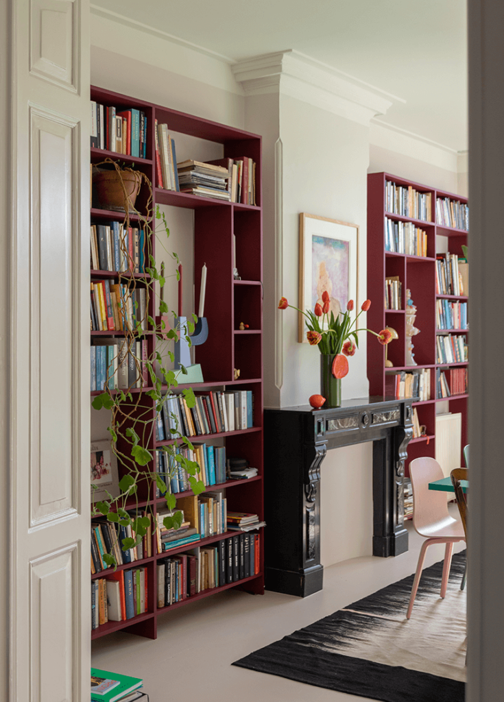 ‘Two of my favorites are the Franklin and Presley candleholders that Ilya designed. They are very robust, witty and elegant at the same time. They allude to the eighties in their shape and the twenties in their colors. When we had the bookcase in our living room made, we specifically asked for a compartment big enough for the Presley candle holder.’