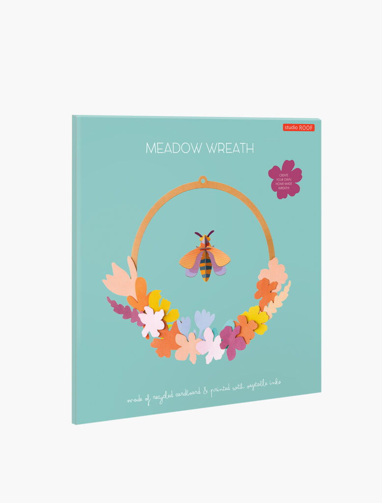 Cette couronne de fleurs, faite à la main, apportera une touche naturelle dans votre maison. Une petite abeille a également fait son entrée dans le bouquet!  Il suffit simplement  de retirer et assembler l’abeille ainsi que les fleurs en papier pour créer votre propre couronne!