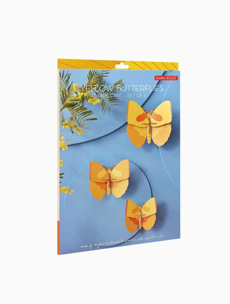 Imaginez le chuchotement de l’eau, le chant des oiseaux, puis soudain, observez ces trois créatures dansant au dessus de vous, si délicatement qu’elles vous en coupent le souffle. Et avant même que vous le réalisez, elles sont disparues! Heureusement vous pouvez suspendre ces trois papillons sur votre mur et les admirer aussi longtemps que vous le souhaitez.