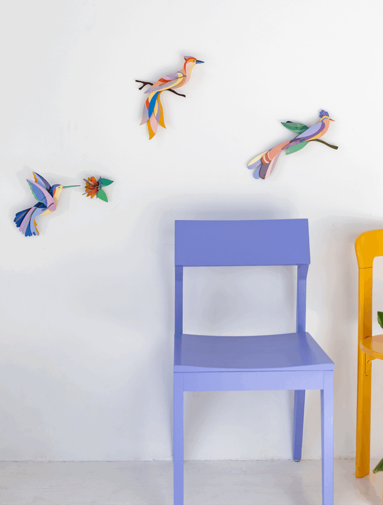 Deze paradijsvogels van gerecycled karton zijn een sieraad voor je huis: altijd even kleurrijk en verleidelijk met hun opvallende grafische dessins.